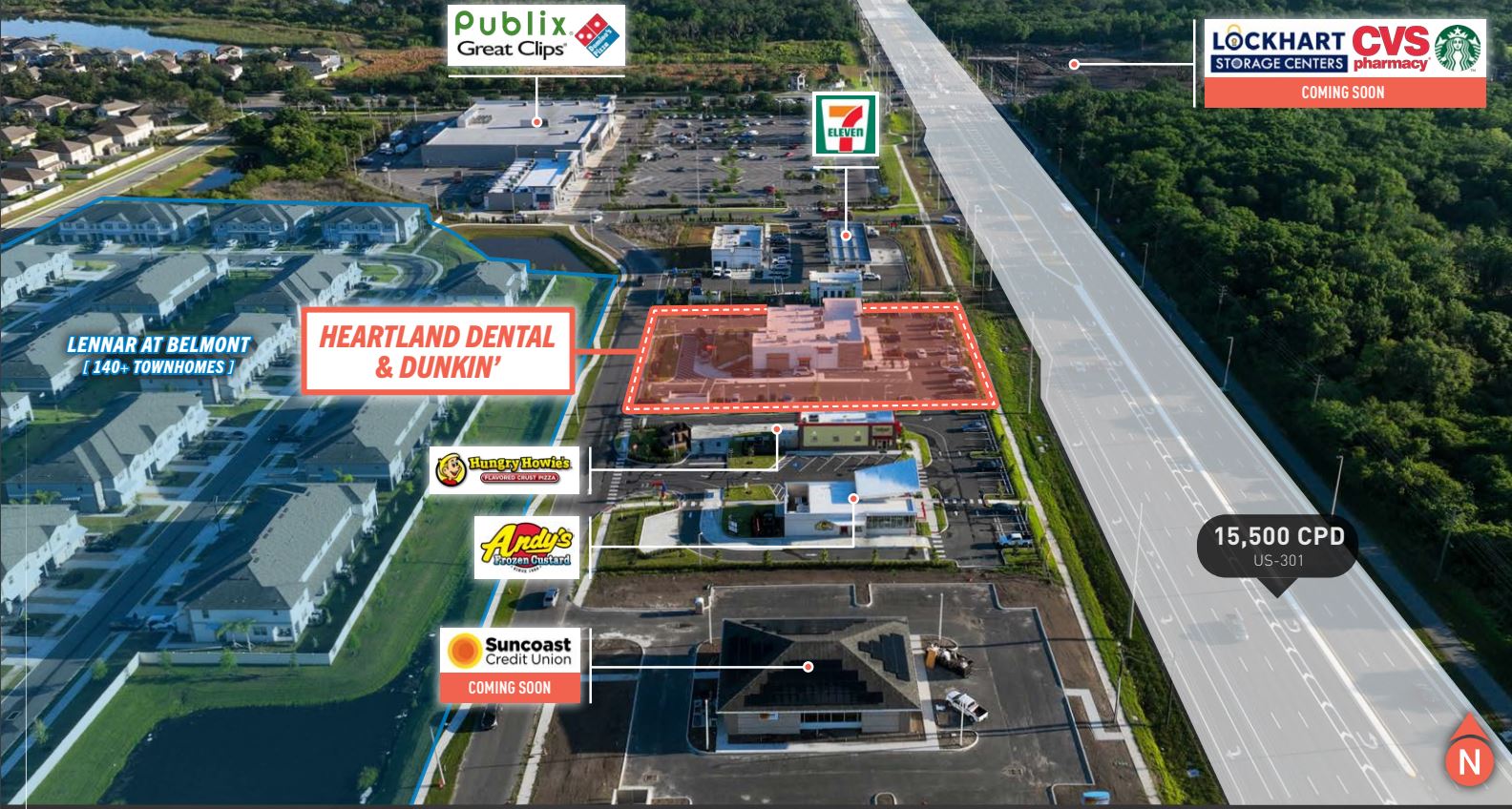 Sun City/Wimauma Florida is one of the fastest growing areas in Florida with close to a 20% growth rate. The area is experiencing an excellent amount of new development with strong national tenants nearby, such as Chic-fil-a, Publix, CVS, Dominoes, Starbucks, 7/11, and many more. The area is also known for some of its popular tourist attractions such as the Little Manatee State Park. This is a well known park and one of the main attractions of the area. With strong tourist attractions, large national tenant presence, and excellent demographics, this is more than ideal space for any business looking to come to the Sun City FL/Wimauma area.